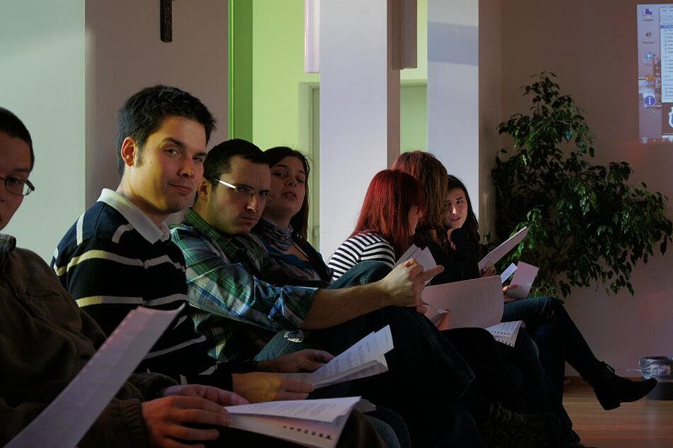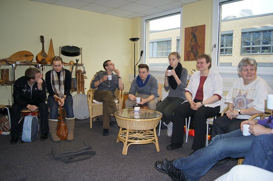 Wahrend der Begegnung besuchten wir immer wieder auch Veranstaltungen des Europaischen Taize-Jugendtreffens. Es war eine bereichernde Erfahrung, junge Menschen aus so vielen verschiedenen Ländern gemeinsam diskutieren, beten, feiern und schweigen zu sehen. Die vom Prior der Taize-Kommunität Bruder Alois eingebrachten Gedanken einer „neuen […] zwischenmenschlichen Solidarität“ und einer „Erfahrung von Gemeinschaft“ haben ganz existentiell etwas mit Vertrauen zu tun. Im Rahmen des Taize-Treffens besuchten wir auch die Missionsärztlichen Schwestern in Berlin, wo wir interessante Erfahrungen sammeln konnten, konkret in der Wahrnehmung von Klangen und Stille, von Verschiedenheit, Ausdruck und Eindrucken. Eine Musikpädagogin brachte uns die Möglichkeiten von Musik mithilfe zahlreicher origineller Instrumente nahe.