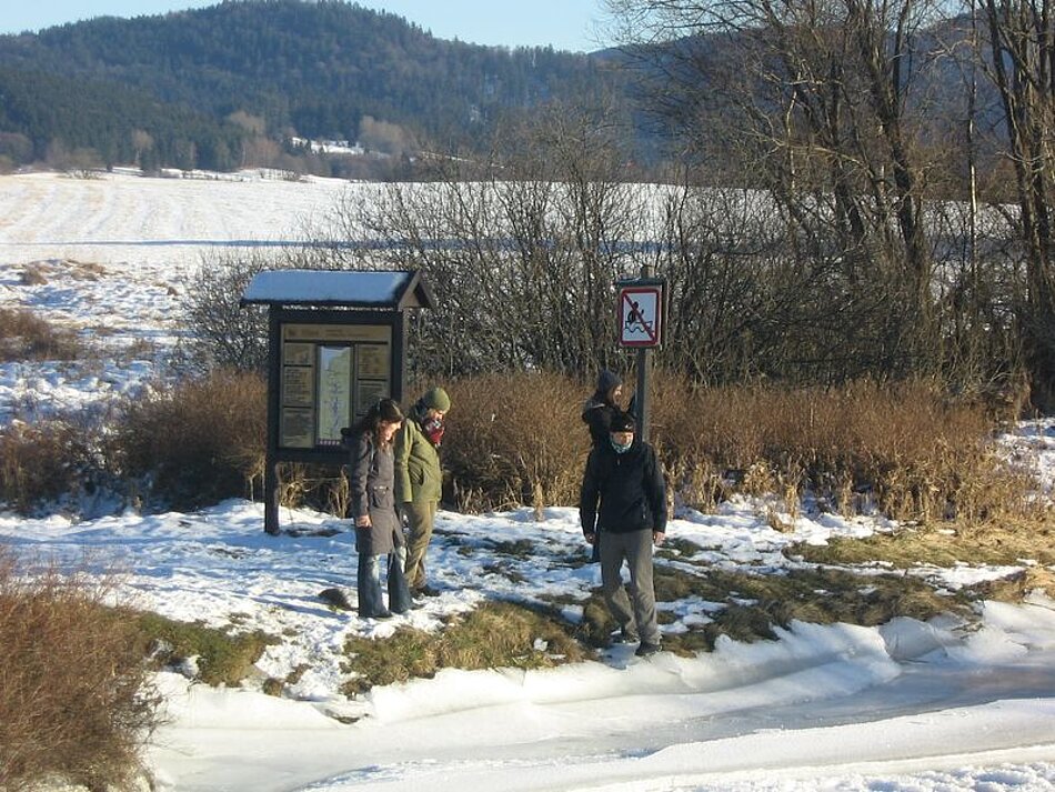 Es war ein sehr großes, renoviertes und voll ausgerüstetes Haus mit einer Küche in der nichts fehlte! Der Plan war vom Anfang an, dass wir uns alle zusammen die Hausarbeiten teilen würden und damit war gemeint, dass wir jeden Tag selbst kochen, Holz hacken und mit dem traditionellen Holzofen das Haus heizen würden. Vielleicht klingt das kompliziert, aber gerade dadurch hatten wir sehr viel Spaß und konnten uns besser kennenlernen. Für das Kochen mussten wir natürlich einkaufen. Diese Möglichkeit gab es in Volary, ca. 10 km von Pěkna, wo wir auch in einer schöne Kirche die Sontagsmesse besuchten. Der Lauf der WWW ist hauptsächlich so geblieben, wie wir ihn kennen. Es gab wie immer Kennenlernenspiele, frühes Aufstehen und Frühstück, Referate zum Thema „Terrorismus“ und natürlich Meditationen. Allerdings war das Programm ein bisschen lockerer als normalerweise und das gab uns die Möglichkeit genug Freizeit zu haben, um das wunderschöne tschechische Land zu genießen. Nicht weit von unserem Haus gab es schöne kleine Dörfer, der sehr große und zugefrohrene Lipno-Stausee, auf dem man Schlittschuhlaufen und natürlich den Schnee genießen konnte. Zu unser aller Verwunderung fuhren die Tschechen mit ihren Autos über den See und nahmen diesen so als Abkürzung.