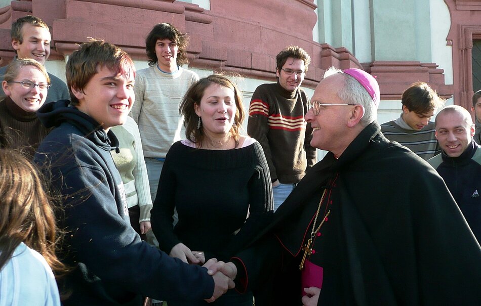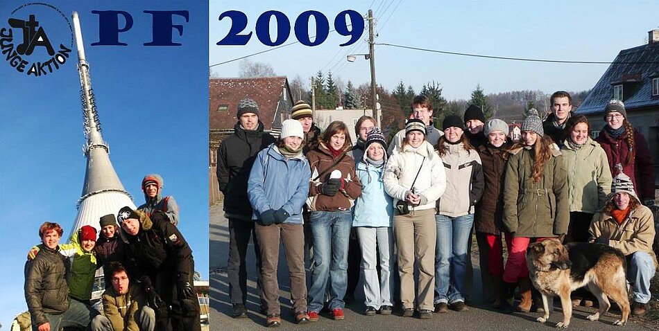 Der Silvester-Vormittag steht ganz im Zeichen des Bischofsbesuches. Die Morgenandacht nutzen wir, um die Lieder für den Gottesdienst zu üben. Mons. Jan Baxant, der neue Bischof von Litoměřice (Leitmeritz), feiert mit uns, den Brüdern und Schwestern, sowie der Gemeinde von Jablonné einen deutsch-tschechischen Gottesdienst. In seiner Predigt erinnerte er uns daran, dass wir alle Kinder Gottes sind. Einige von uns fungieren als Ministranten. Im Anschluss kommen wir bei Tee und Keksen mit ihm ins Gespräch, er spricht ziemlich gut deutsch. Sebastian überreicht im Namen der Ackermann-Gemeinde und der Jungen Aktion Geschenke, u. a. ein neues JA- T-Shirt. Auch Miloš Raban, der geistliche Beirat der Jungen Aktion, ist anwesend. Trotz der Kälte und des Windes stellt sich der Bischof mit uns vor der Kirche zum obligatorischen Gruppenfoto auf. Dann muss er leider schon wieder weiter.