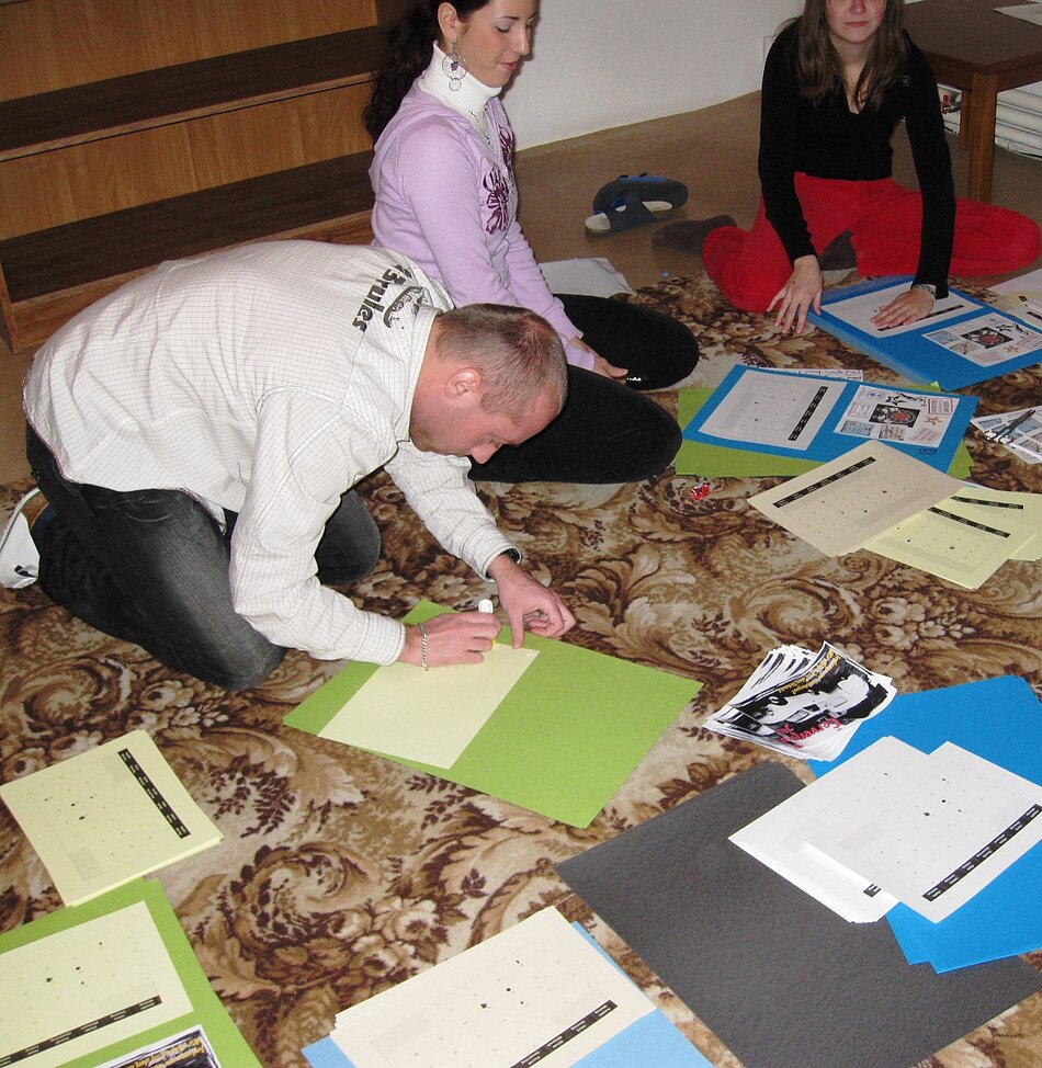 Die Morgenandacht, wie immer von Rebecca und Kristýna in zwei Sprachen gehalten, belebt Seele und Körper gleichermaßen: Bewegungslieder machen auch die letzten Morgenmuffel munter. Dann beginnen wir mit Arbeit an den Kalendern. Jeweils zwei bzw. drei Leute gestalten einen Monat mit verschiedenen Aspekten der Friedlichen und der Samtenen Revolution. Es sollen insgesamt 40 Exemplare entstehen. Der Internet-Anschluss des Klosters ist eine große Hilfe.