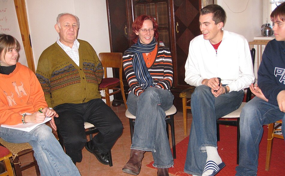 Nach dem leckeren Mittagessen sprechen wir mit Rudolf Meinl, der die DDR und die Wende selbst miterlebt hat. Er erzählt uns eigene Erlebnisse aus seiner Kindheit, Jugend und seinem Berufsleben, schildert den Alltag, die Wohnsituation, die Kontrolle durch die Staatssicherheit und die Mangelwirtschaft, sowie die schwierige Situation der Kirche in der DDR. Dabei übersetzt Kristýna unermüdlich für die tschechischen Teilnehmer.