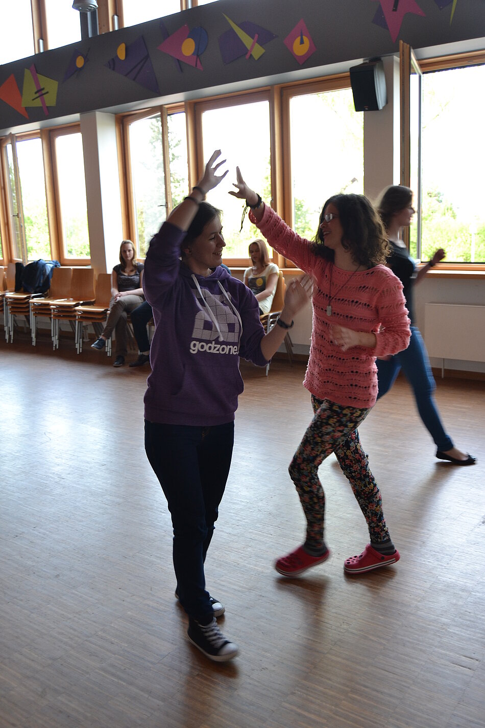 Natürlich geht das ganze nicht von statten ohne das man nicht doch die eine oder andere Aufgabe übernimmt, aber zum Spüren der Teilnehmerebene reicht es doch. Zum anderen ist es auch eine kleine Hilfe für die Leitenden, einen Teilnehmer mehr zu haben, der bereits weiß wie eine Vorgänge von statten gehen und wie eine Jugendbegegnung aufgebaut ist.